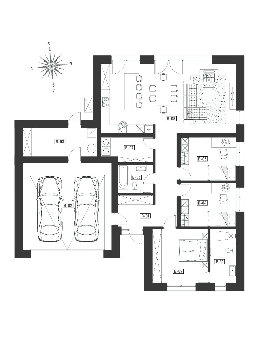 | B-08 | Svetainė + valgomasis + virtuvė | 45.22 |